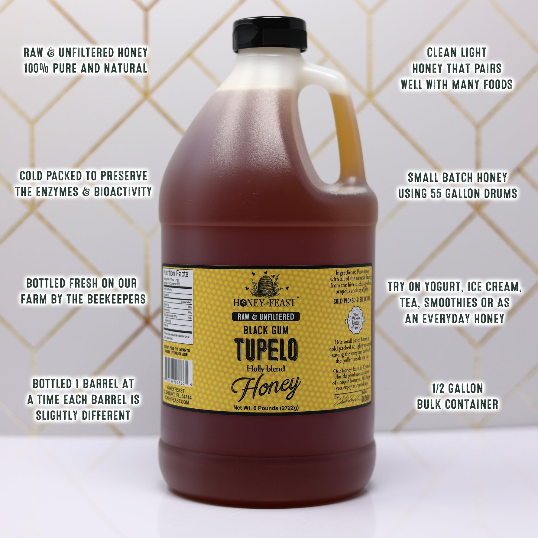 Experience the unique blend of flavors from Florida's Black Gum Tupelo tree and Holly, all in the form of pure, raw, and unfiltered honey. Enjoy the benefits of locally made American honey, perfect for adding a touch of sweetness to your daily tea, toast, or recipes. Stock up on this nutrient-rich honey or give it as a gift for a taste of Florida's natural beauty.