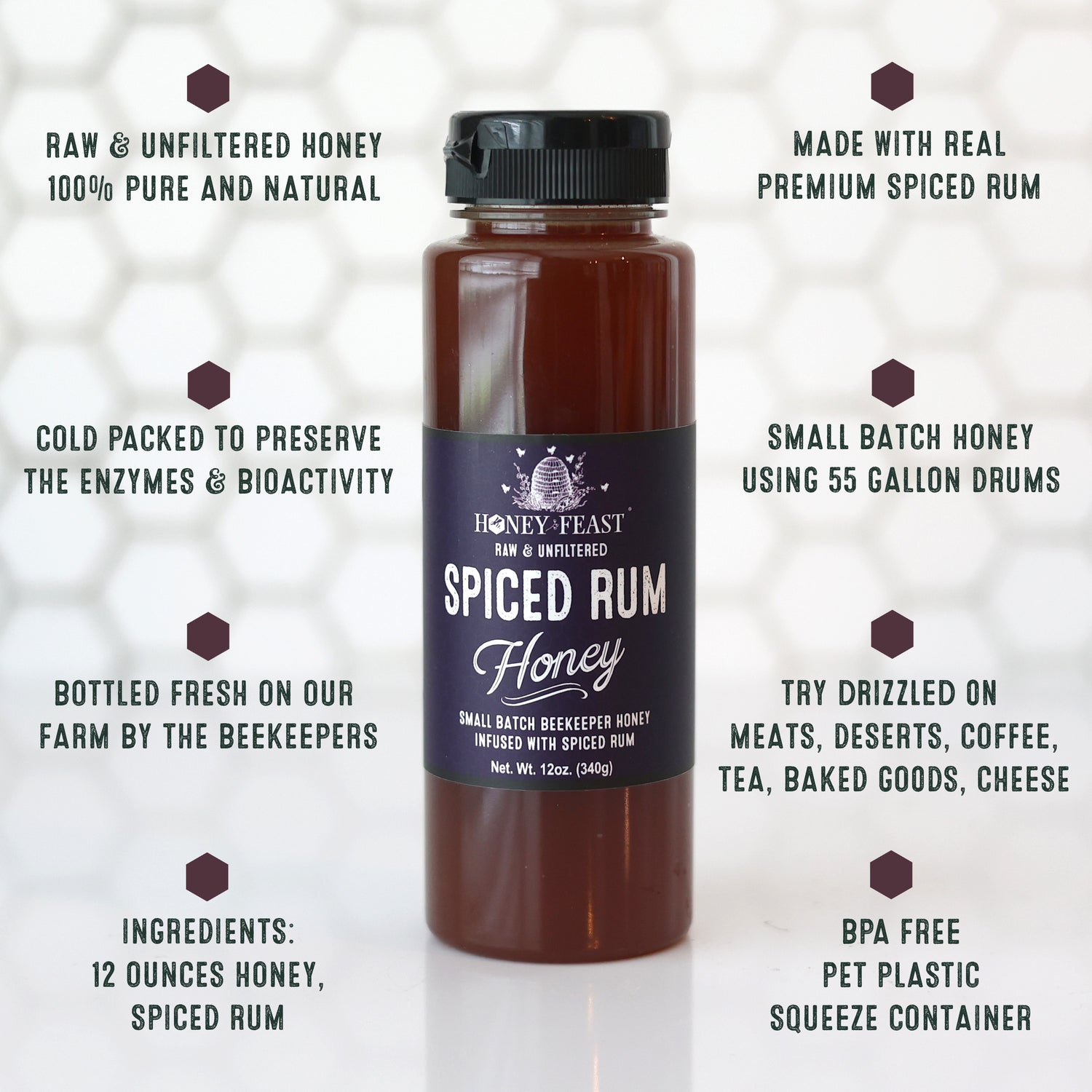 Elevate your cooking experience with HONEY FEAST's Spiced Rum Honey. Share the joy of unique honey flavors with this gourmet honey, perfect for adding a touch of rich complexity to sweet or savory dishes and beverages. Give this premium spiced rum honey as a thoughtful gift for foodies or add it to gift sets for a unique twist. The versatile and delicious flavor is sure to please discerning palates. Try it drizzled over desserts or mixed into cocktails. Share the joy of exceptional taste and quality with HONEY FEAST's Spiced Rum Honey.