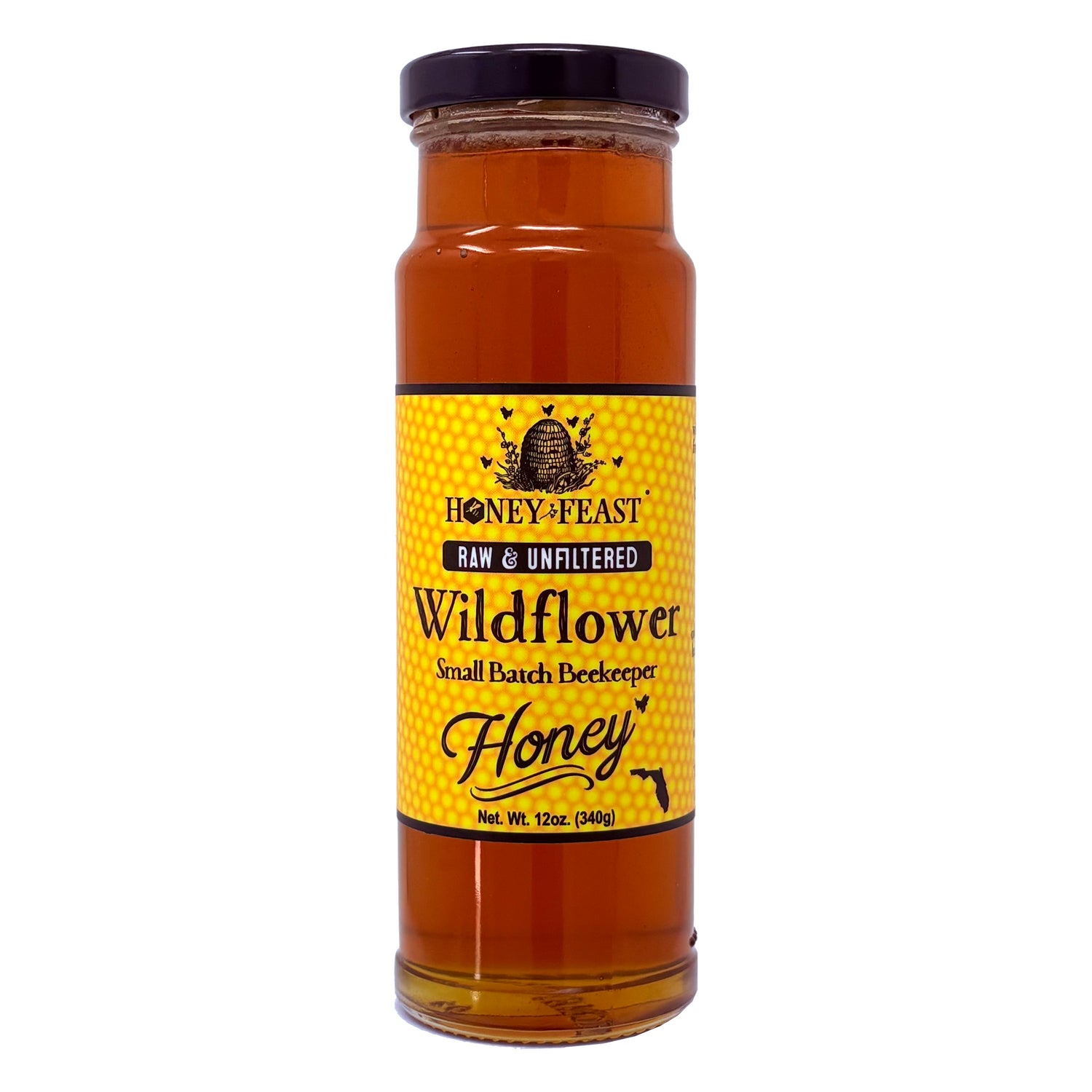Honey Feast Wildflower honey is crafted with care to deliver an authentic raw honey experience, full of diverse wildflower flavors. Our unfiltered process keeps active enzymes and pollen intact, while each jar captures the unique taste of each season. Lightly strained to remove debris, our honey is a direct connection to the pure, untouched wilds of Florida. Honey Feast's organic farm in Central Florida provides a haven for our bees, peaches, and oranges, ensuring a rich and multifaceted flavor in every jar. We honor traditional honey harvesting methods and cold pack our honey to preserve its natural enzymes and pollen. Every jar is a unique and wholesome reflection of wild Florida. Choose Honey Feast for a genuine, raw honey experience that supports our love for bees and organic farming.