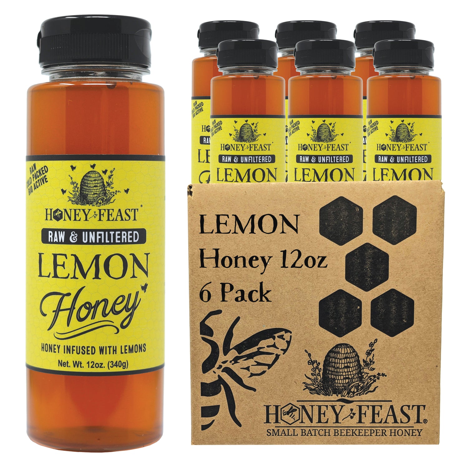 Vibrant Organic Lemon Honey: Each jar in this 6-pack by HONEY FEAST combines pure honey and tangy lemon zest from Florida's sun-kissed groves, creating a refreshing treat. 🐝 Artisanal Craftsmanship: Our small-batch process ensures the highest quality lemon honey, with each jar made by dedicated beekeepers in Clermont, Florida. Pure & Unfiltered: Experience the essence of unfiltered honey and the burst of zesty lemon in every spoonful. 🇺🇸 A Taste of Florida: Our lemon honey pays tribute to Florida's citrus heritage and adds a burst of flavor to any drink or dish. Perfect for Gifts & Cooking: This 6-pack is an ideal present for foodies or a versatile addition to any kitchen. Enjoy the natural sweetness and zesty twist of HONEY FEAST Organic Lemon Honey.