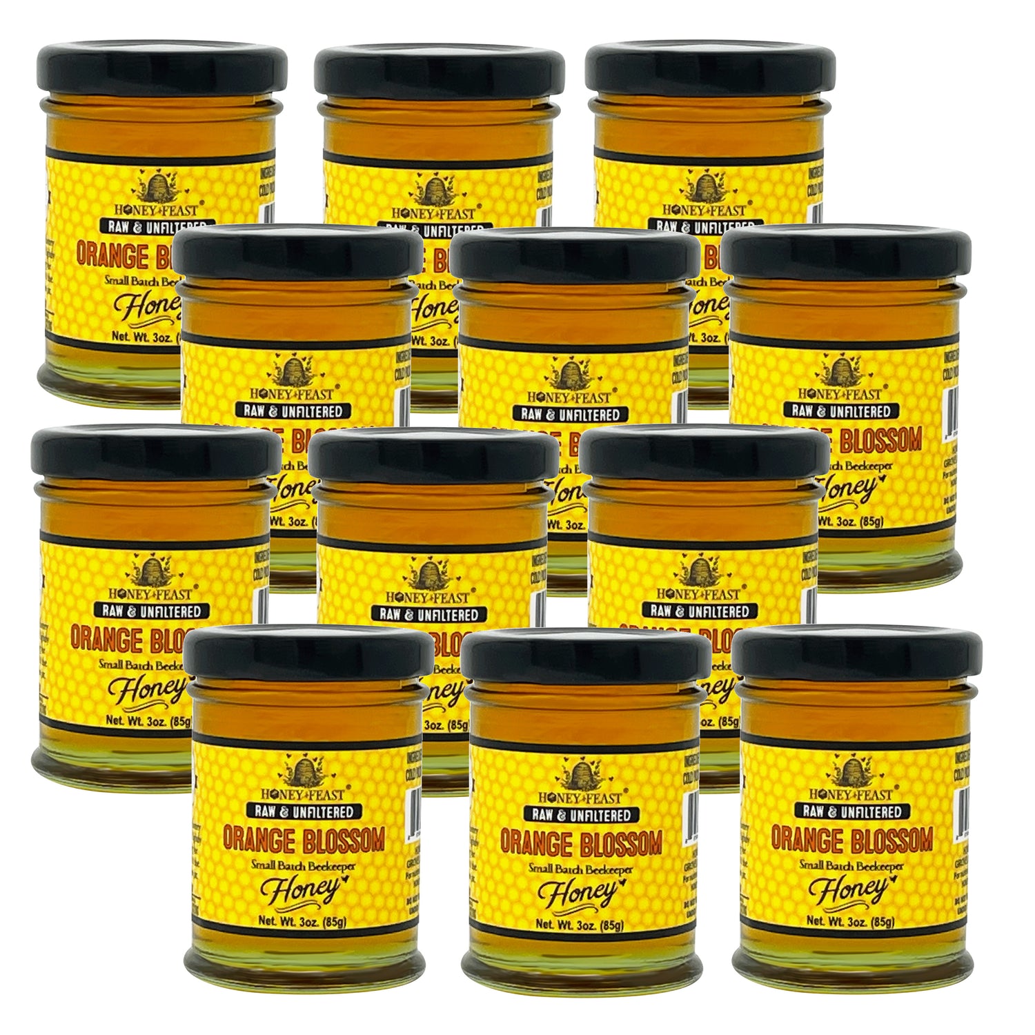 Now available in our signature glass jar in a gift box, HONEY FEAST’s raw orange blossom honey is a pure, natural product sourced from the nectar of orange trees, providing a distinctive citrus flavor. Ideal for everyday use or as an elegant gift, it supports bee conservation and fosters healthy ecosystems. Use it to enhance recipes or as a natural sweetener in teas and baked goods.