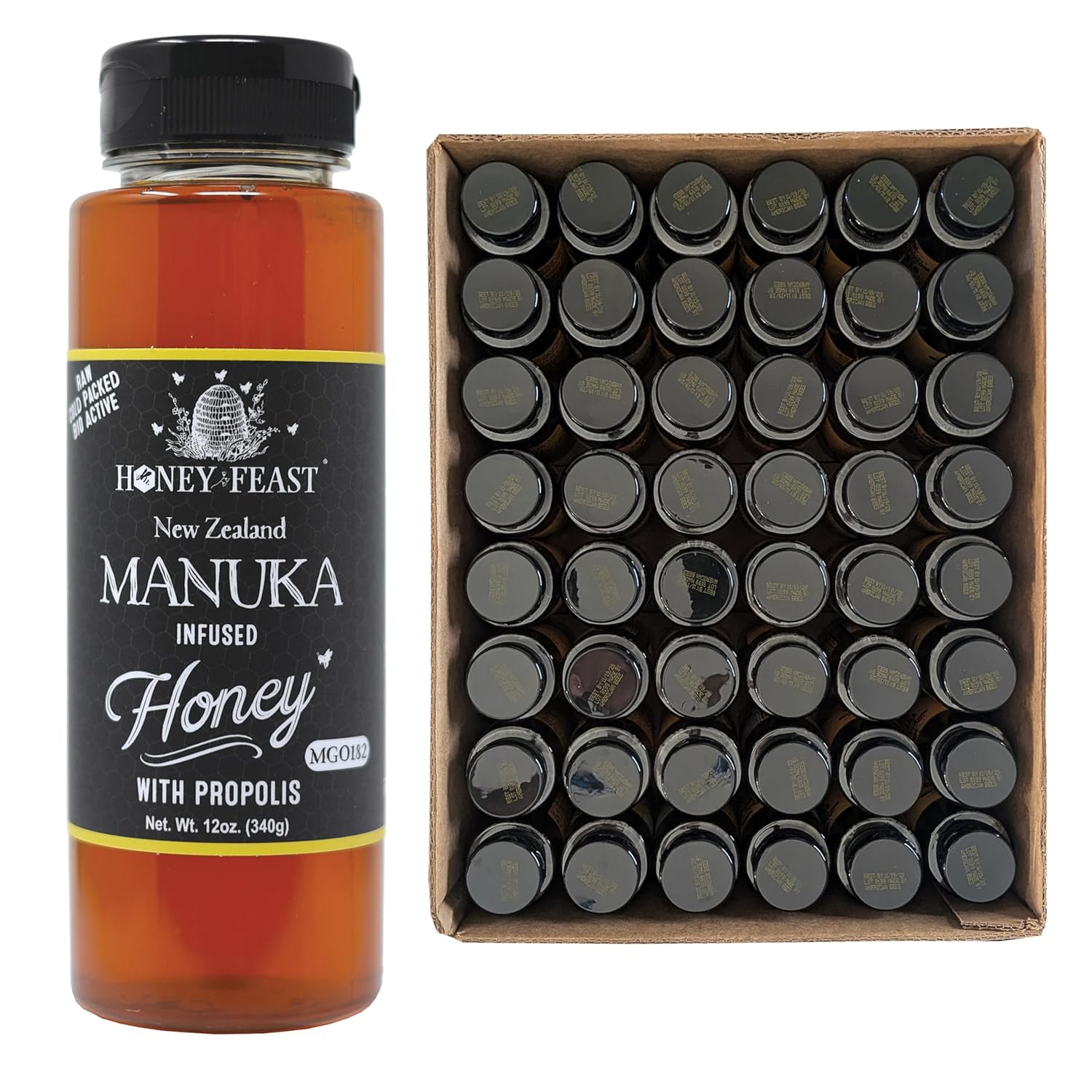 Our Manuka and propolis infused honey is made with a proprietary formula and the highest quality Manuka sourced from New Zealand. Enhanced with bee propolis, it offers a rich source of wellness benefits. Certified MGO182 and deliciously versatile, it's perfect for drizzling on toast, adding to tea, or enjoying on its own. The perfect gourmet addition to any pantry.