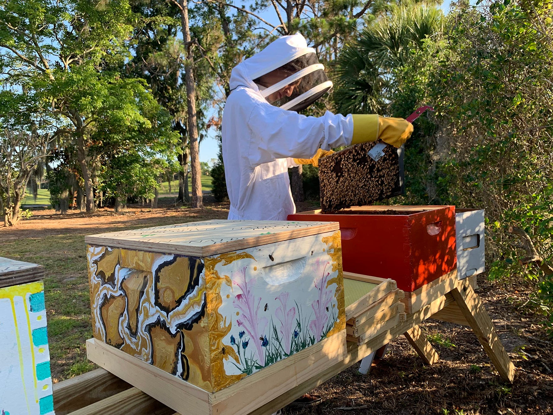 Our farm in Central Florida is on 15 acres directly connected to Lake Louisa State Park. We organically raise 400 peach trees and 800 naval orange trees in addition to our sustainable apiary. All of our honeys and hive products are bottled and packaged on the farm and shipped directly to you.