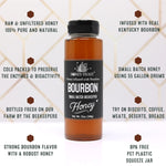 Black Gum Tupelo Honey (Holly Blend) is sourced from bees foraging Black Gum Tupelo trees along with native holly blossoms, producing a mild sweetness with subtle floral notes. Orange Blossom Honey has a light aroma and citrus-forward flavor profile. Bourbon Infused Honey is honey infused with bourbon flavoring and does not contain alcohol.