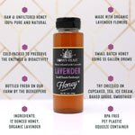 - We DO NOT add any Fructose or corn syrup or adulterate the honey other than the ingredients listed on the jar such as lavender flowers, bourbon etc. for the infusions.