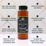 Salted Honey provides a balance of sweetness with a hint of sea salt, suitable for glazes and marinades. Manuka Infused with Propolis Honey features raw honey infused with Manuka-inspired flavor and natural propolis. Spiced Rum Honey offers warm depth and complexity that works well in sauces or drizzled over grilled foods.