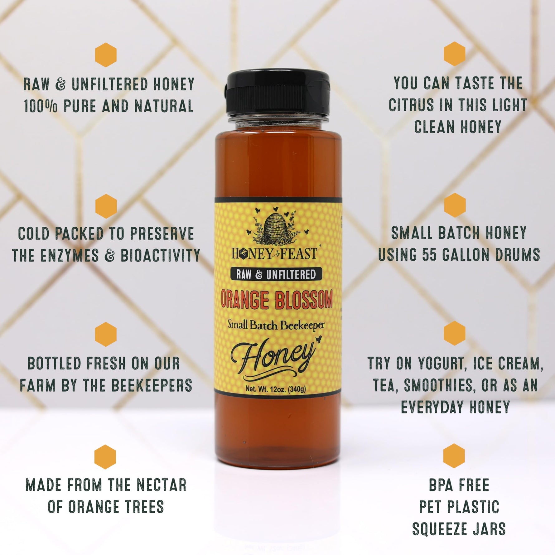 Experience the HONEY FEAST Wellness Trio, a gourmet honey gift set featuring three 12oz jars of premium raw honey—Allergy Blend, Wildflower, and Orange Blossom Honey. Crafted in small batches by Florida beekeepers, this trio highlights authentic flavors and artisanal quality.