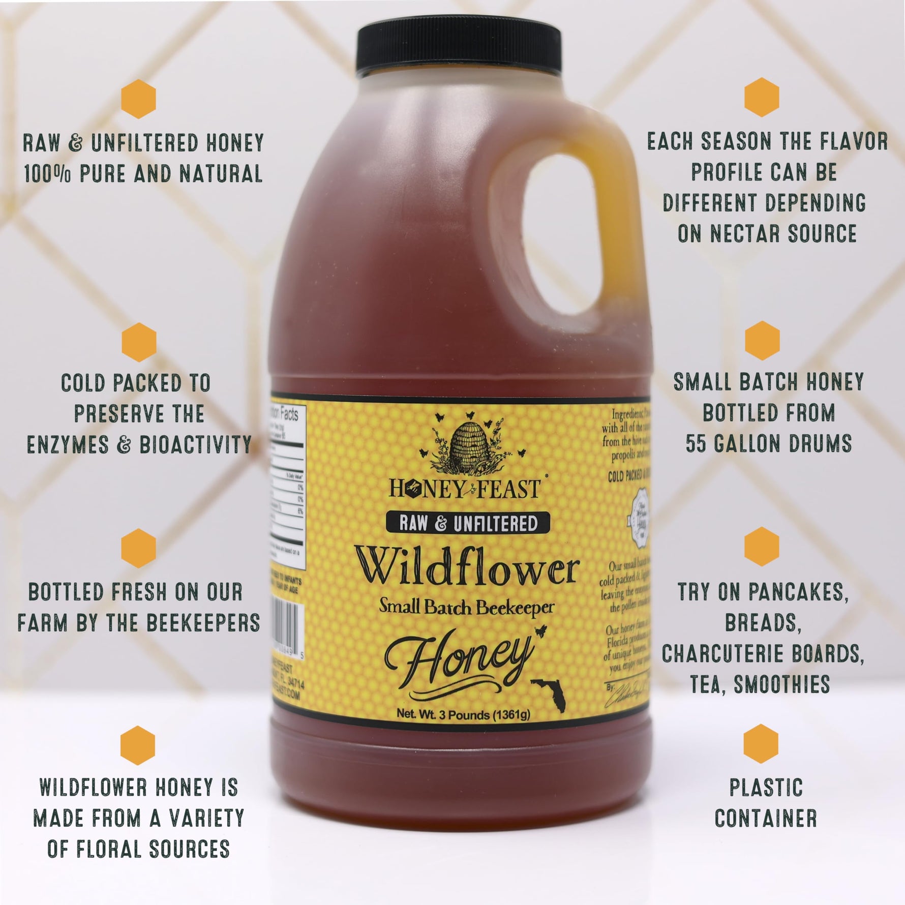 Introducing Honey Feast's Wildflower Honey, now available in a convenient 2-pack of 3 lb jars—perfect for lovers of rich, unadulterated raw honey. Each jar captures the full spectrum of wildflower varieties, reflecting the natural cycle of the seasons and infusing every batch with unique flavor and depth.